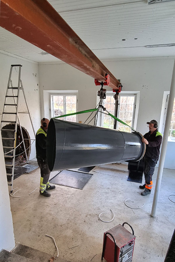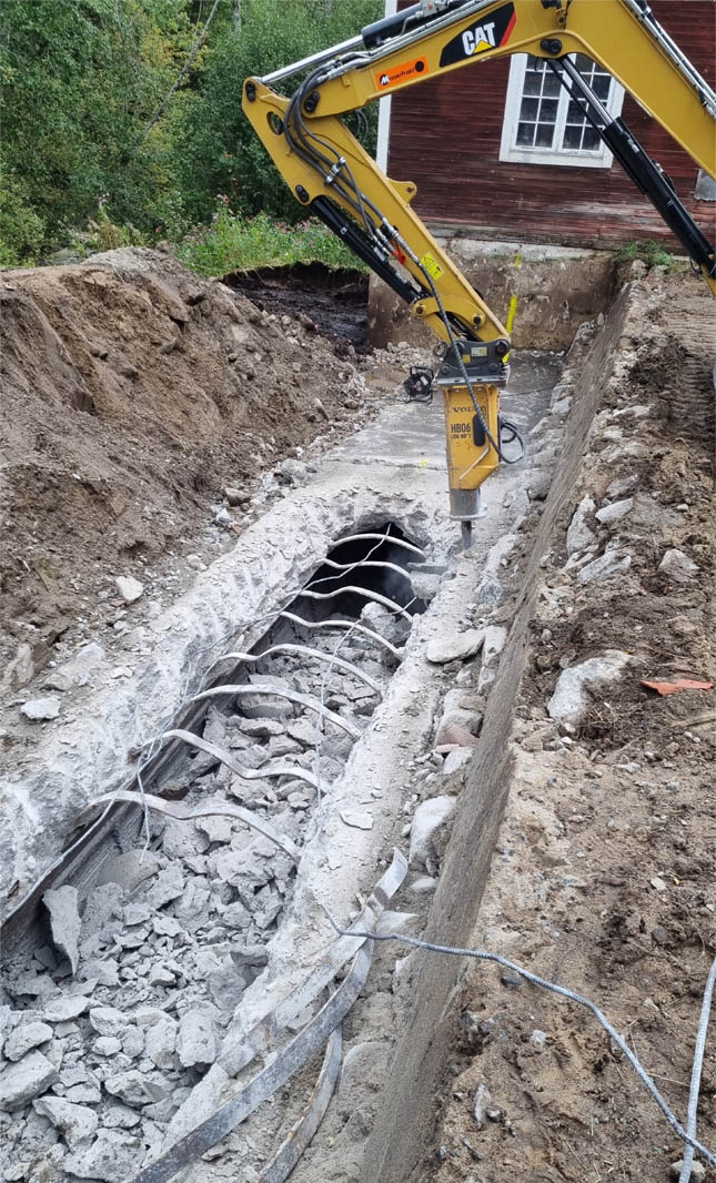 Rivning av gamla trumman och vattentuben startar.