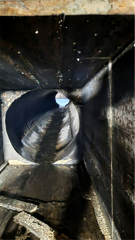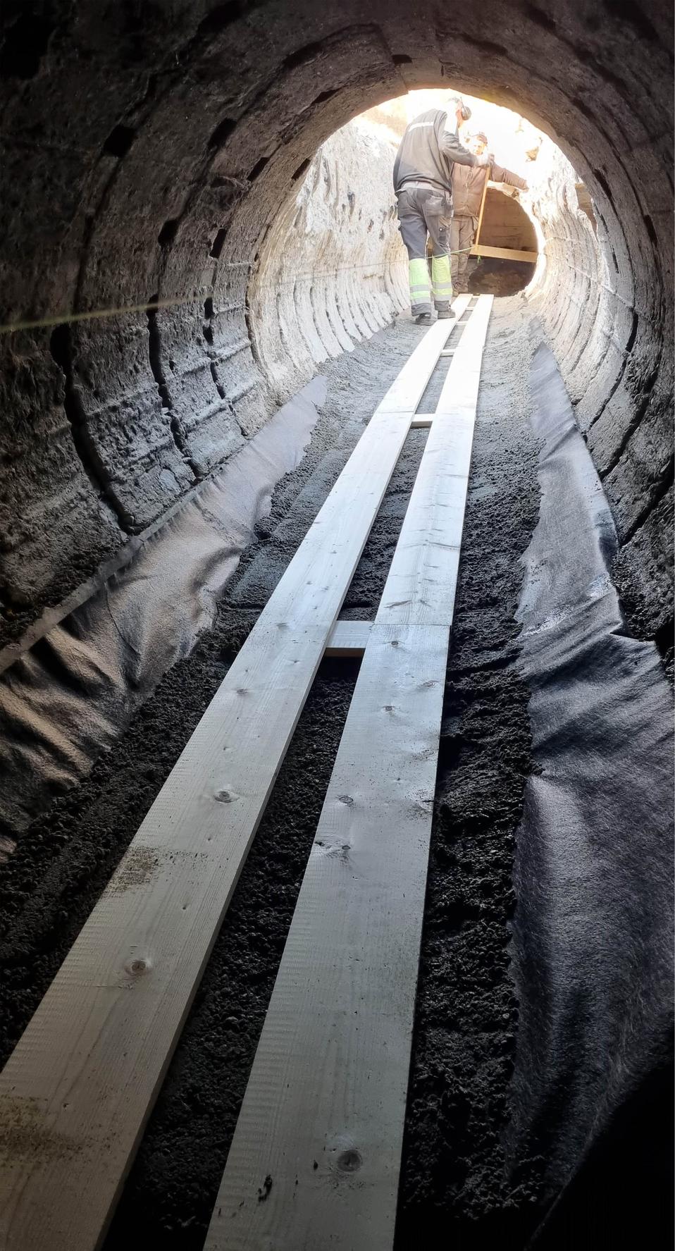 Ett rejält lager betong täcker tuben.