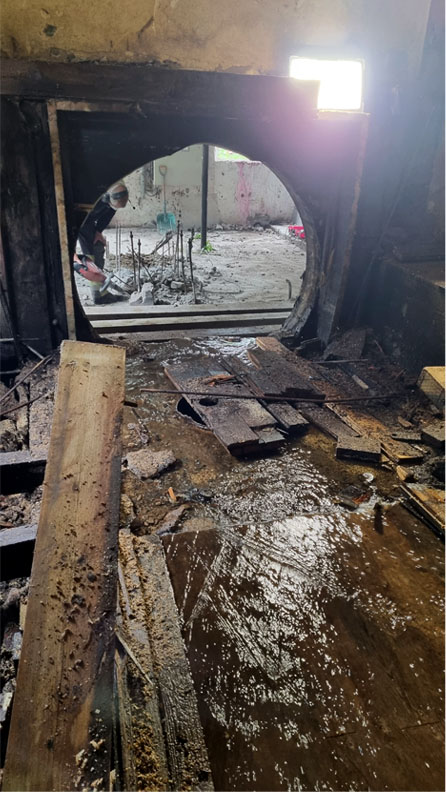 Den gamla trumman rivs och plockas bort.